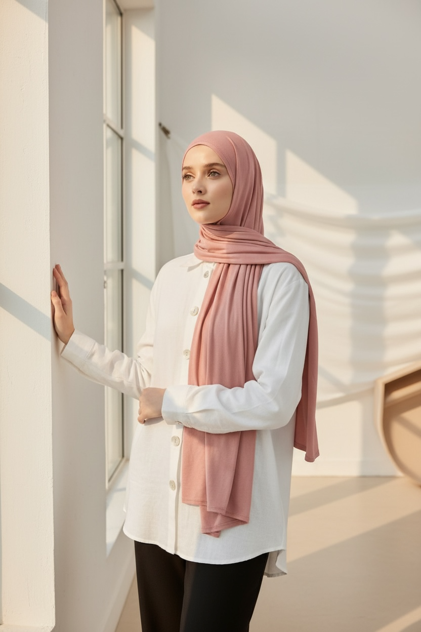 # Premium Jersey Scarf Crafted from a luxurious blend of 95% viscose and 5% elastane, this scarf combines fluid drape with subtle stretch for effortless wear. Viscose delivers a soft, lustrous finish with natural breathability, while elastane ensures the fabric maintains its shape throughout the day. The result is a refined accessory that moves gracefully with you, offering both comfort and elegance in a versatile piece designed for the discerning wearer.